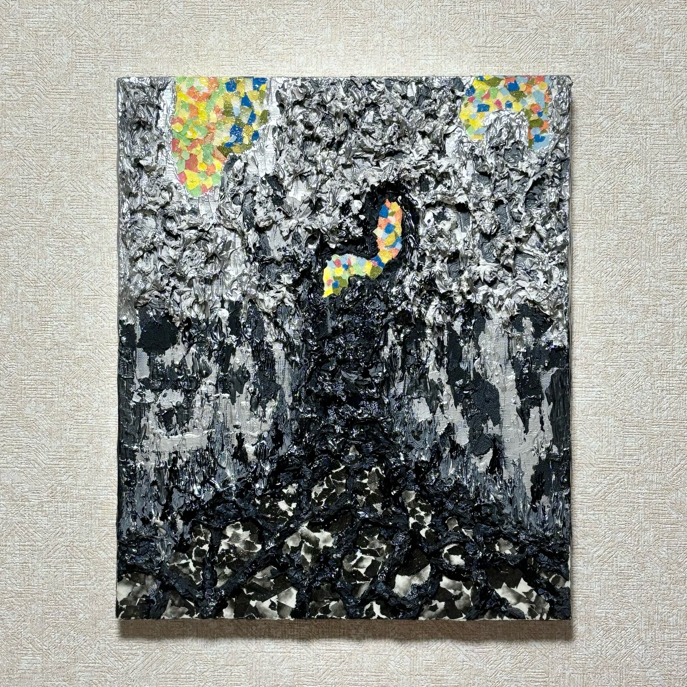 ⭕️SOLD OUT⭕️【Memory tree】過去の記憶 ハンドメイド テクスチャーアート 抽象画 アクリル画 現代アート アールブリュット インテリア 植物 シルバー キッチンペーパー