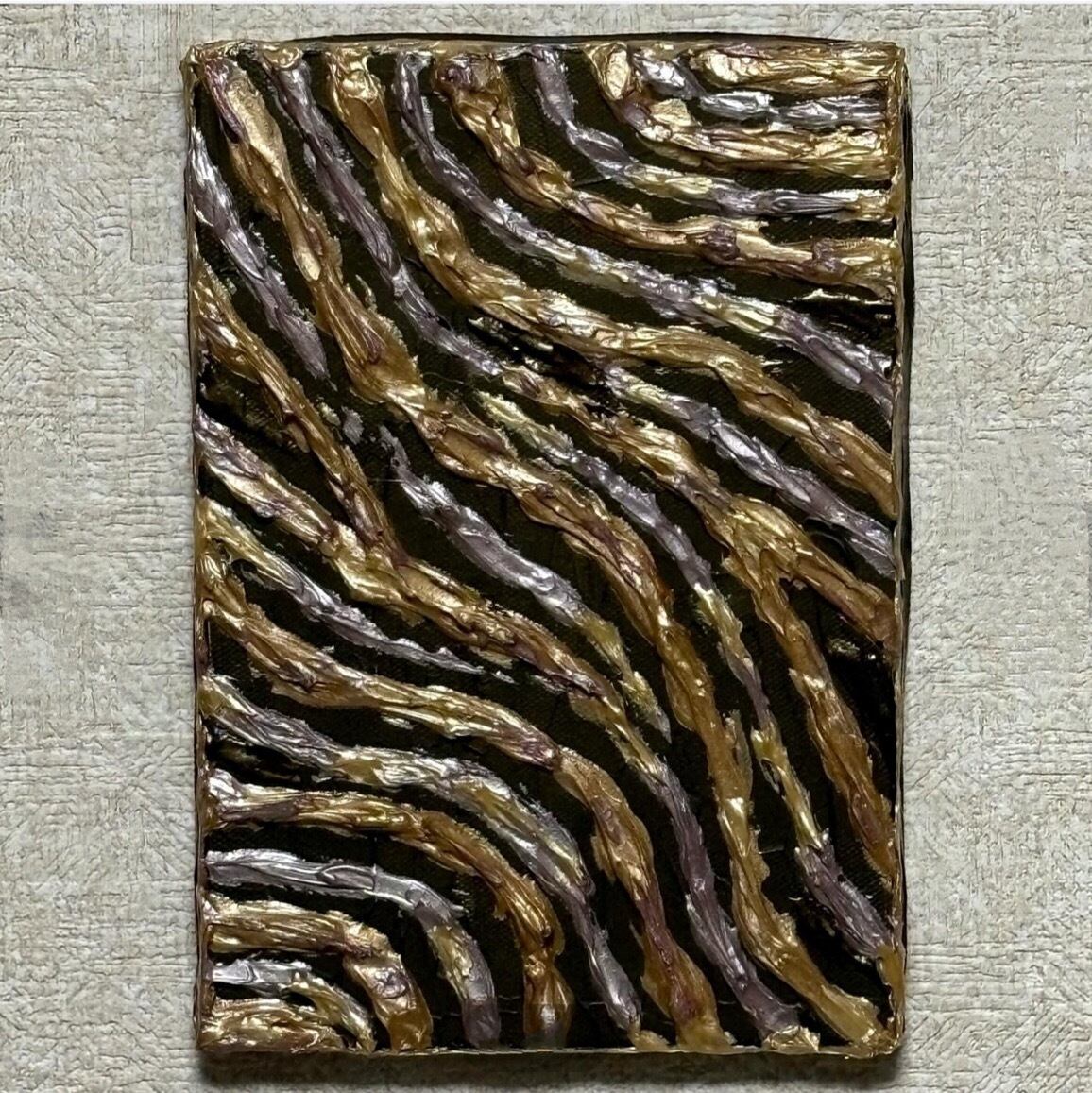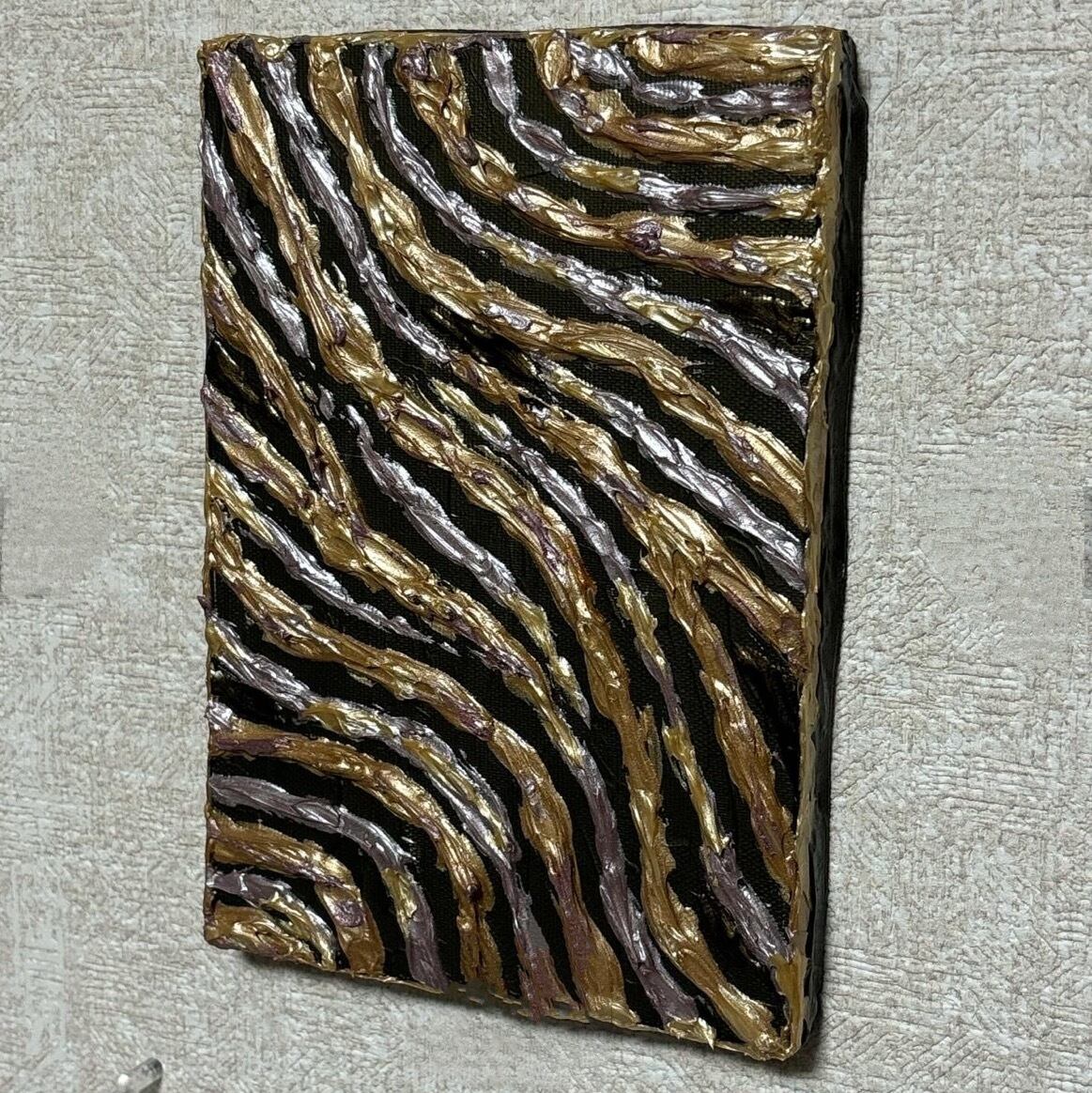 ⭕️SOLD OUT⭕️ 【Flow】流れのままに インテリア 置物 テクスチャーアート モダン 現代アート 原画 抽象 アクリル ミクストメディア 立体オブジェ ゴールド ブラック 雑貨
